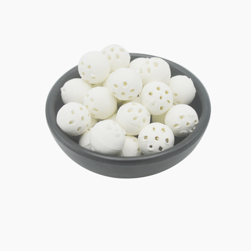 開(kāi)孔瓷球是在惰性瓷球基礎(chǔ)上開(kāi)發(fā)的新產(chǎn)品,它以球體直徑軸心進(jìn)行開(kāi)孔,既具有如惰性瓷球那樣一定的機(jī)械強(qiáng)度、化學(xué)穩(wěn)定性和熱穩(wěn)定性,又增加了比表面積和空隙率,從而增加了物料的分散性和通量,降低了系統(tǒng)的阻力。開(kāi)孔瓷球自投放市場(chǎng)以來(lái),廣泛應(yīng)用于石油、化工和天然氣行業(yè)替代惰性瓷球作催化劑的覆蓋支撐填料。