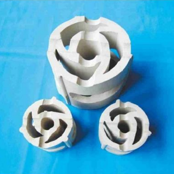 陶瓷車輪環(huán)是在吸取多種常規(guī)陶瓷散堆填料產(chǎn)品(鮑爾環(huán)、異鞍環(huán)、階梯環(huán)等)的優(yōu)點(diǎn),經(jīng)多次實(shí)驗(yàn)后而研制而的新型陶瓷填料,它是由多條均勻排列的曲徑及兩圓筒構(gòu)成的一個(gè)整體,在外圓筒上大開孔,兩圓筒上下底開缺。車輪環(huán)工藝改形產(chǎn)品兩圓筒上下底不開缺。我公司生產(chǎn)的陶瓷車輪環(huán)填料因采用高嶺土、長石、石英等為主要原料經(jīng)精心配料,再經(jīng)成型、干燥、1300℃高溫?zé)桑a(chǎn)品完全瓷化,機(jī)械強(qiáng)度好,具有優(yōu)異的耐酸耐熱性能,能耐除氫氟酸以外的各種無機(jī)酸、有機(jī)酸及有機(jī)溶劑腐蝕,可在各種高溫場合使用