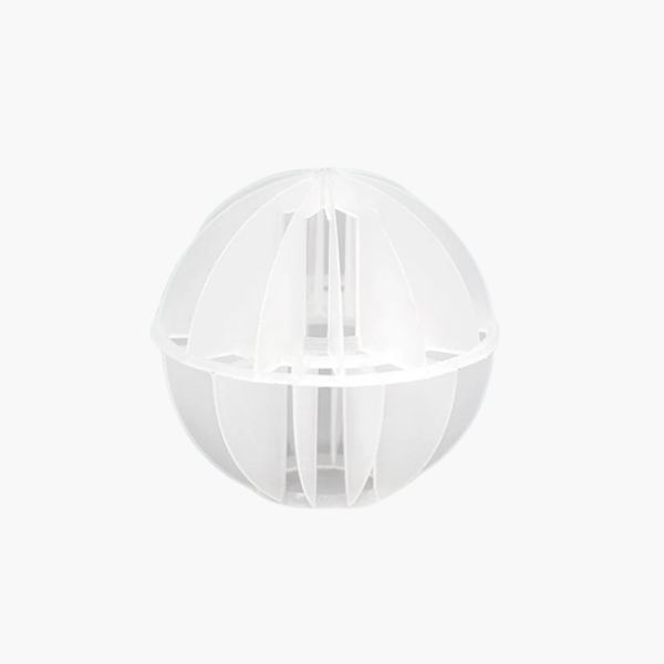 塑料多面空心球由兩個半球形成一個球體,每個半球由若干半扇形葉片組成 ,上下葉片交錯排列。該球的優(yōu)點是很容易在填料層完全堆疊,但不會造成橋接和孔效應(yīng)現(xiàn)象,因此,促進(jìn)了氣液分布均勻,多面空心球具有氣速高,葉片多,阻力小;比表面積大,可充分解決氣液交換;具有阻力小操作彈性大等特點。